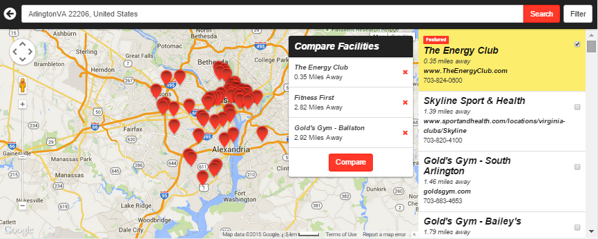 gyms, YMCAs and healths side by side. Stop opening and closing gyms websites to compare anemities.